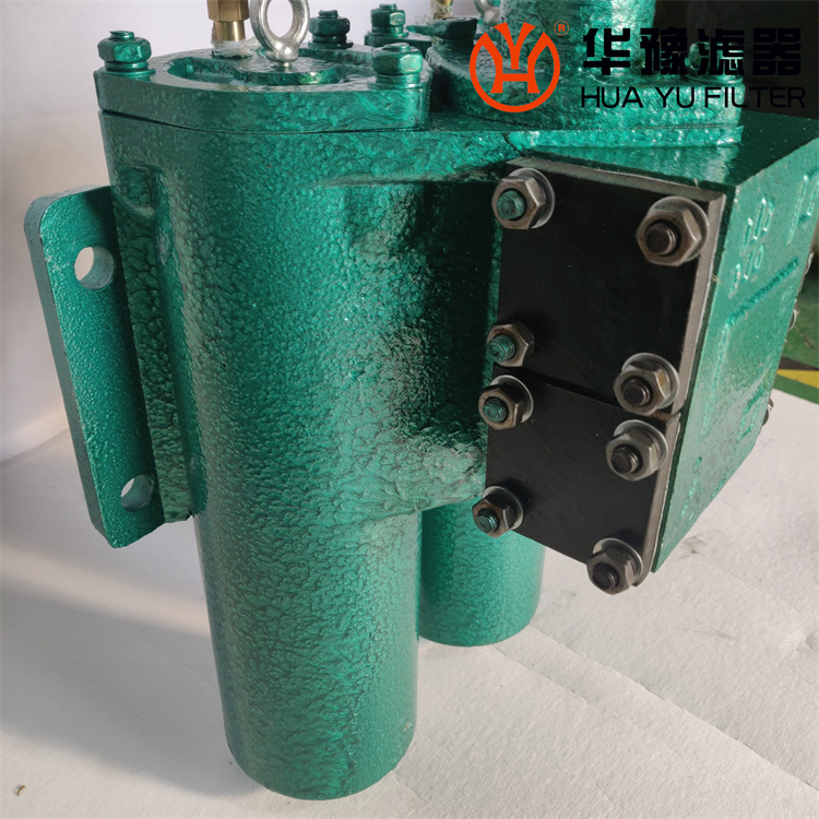 該由兩只單筒過濾器,兩只單向閥、換向閥、旁通閥、發訊器等組成,它可在系統不停機狀況下更換濾芯,適用于連續工作的中低壓液壓系統。當其中一只過濾器的濾芯在工作過程中堵塞至壓差發訊器壓力值時,發訊器動作,它可按上電源及指示器的提示人們應更換此濾芯。更換濾芯時,只要轉換向閥手柄到另一位置后,備用的過濾筒開始工作,旋開已堵塞的過濾筒放油螺塞放完油后,再旋下外殼,即可更換濾芯。