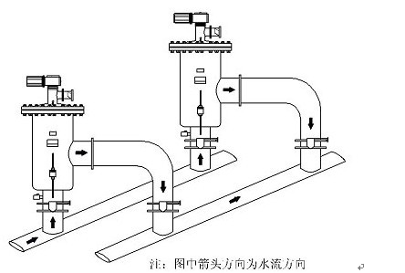 (3)自清洗過濾器應(yīng)安裝在需要保護(hù)的用水設(shè)備之前,并盡量靠近用水設(shè)備。